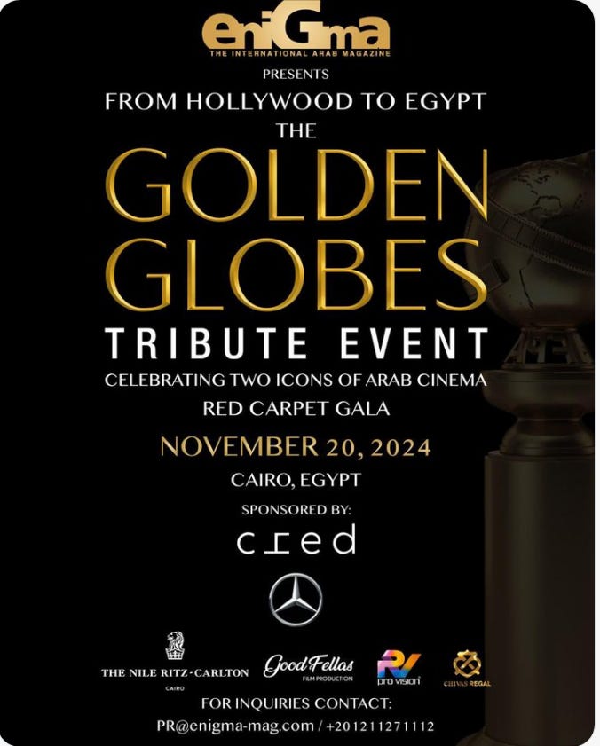 AN ENIGMA, INDEED The invitation to the Golden Globes red carpet gala in . . . Cairo . . . that was announced by a local magazine/PR firm one week ago. (Screenshot)