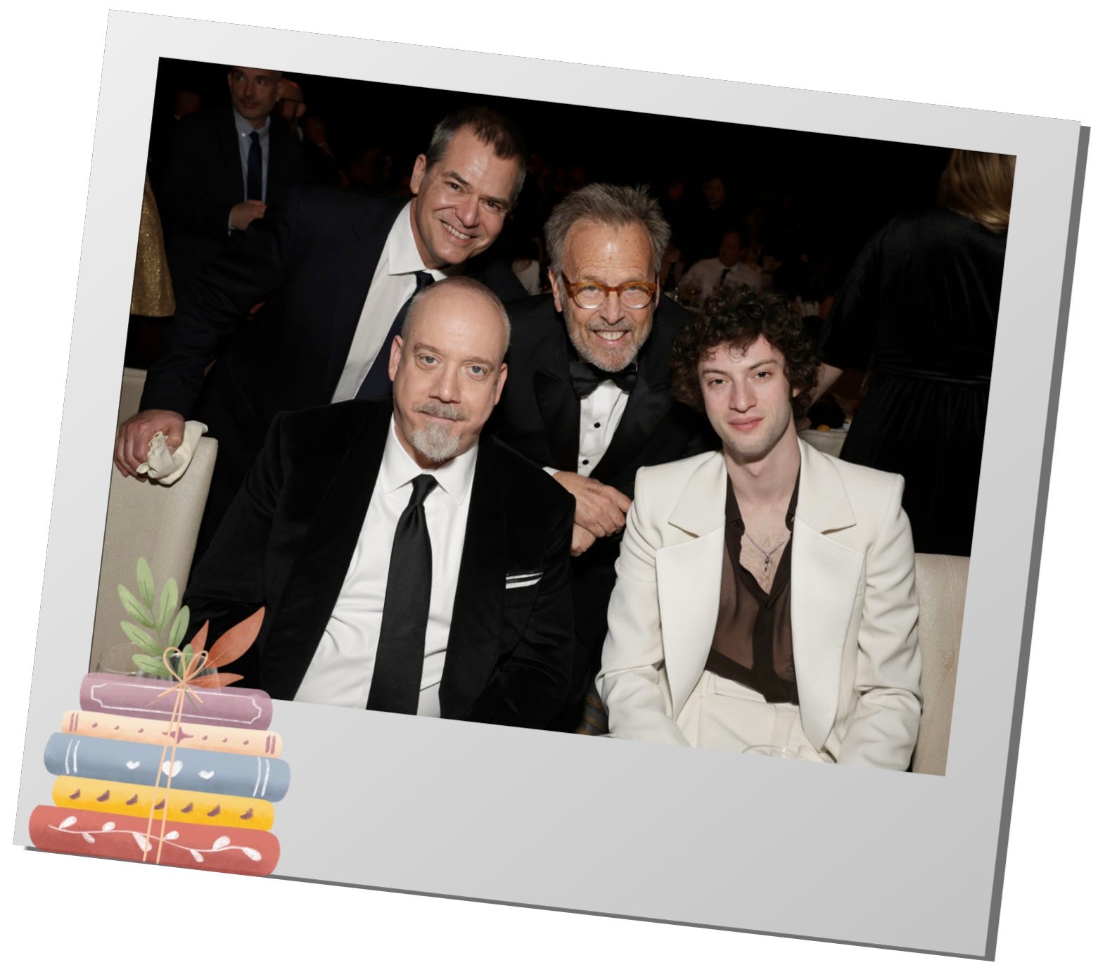 The Holdovers hangout (from left): Producer David Hemingson, star Paul Giamatti, producer Mark Johnson and star Dominic Sessa.