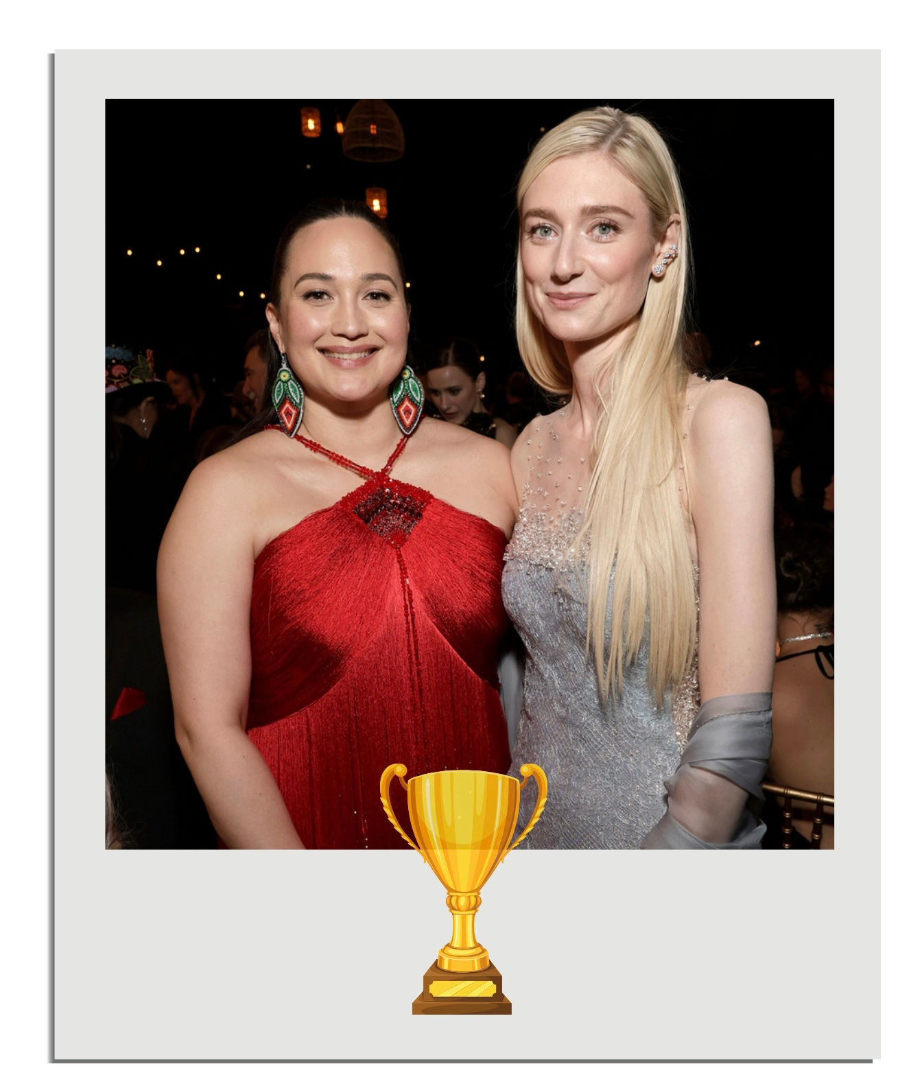 Winners! Killers of the Flower Moon’s Lily Gladstone (left) scored for female actor in a leading role; The Crown’s Elizabeth Debicki for outstanding performance by a female actor in a drama series.