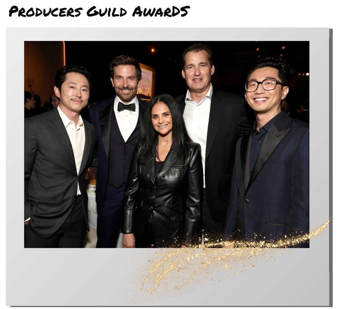 From left: Beef’s Steven Yeun, Bradley Cooper, Netflix chief content officer Bela Bajaria, Scott Stuber and Beef creator Lee Sung Jin. The show won for outstanding producer of limited or anthology series television.