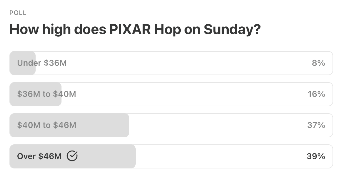 Well, I’m counting this a win for my fellow 39% bulls as DISNEY PIXAR’s Hoppers is right on the cusp of my demarcation point . . . but 37% you get points too.
