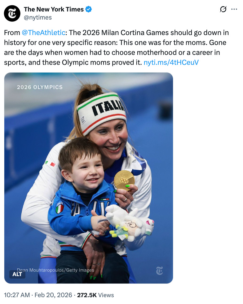 But instead, let’s round out with The Athletic’s look at all the mom athletes at the Winter Olympics who brought their kids, and the great vibes it set around the Olympic facilities throughout the 2 weeks in Italy.