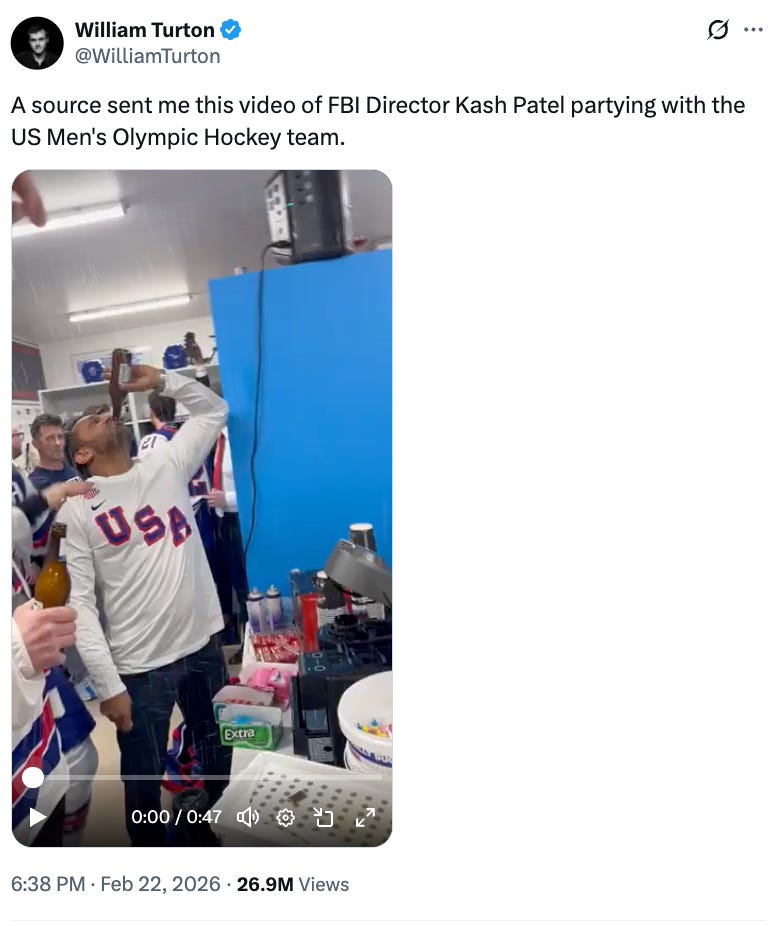 Trump also invited the men’s U.S. hockey team to the SOTU speech tonight when he called them after Kash Patel was done with their beers.