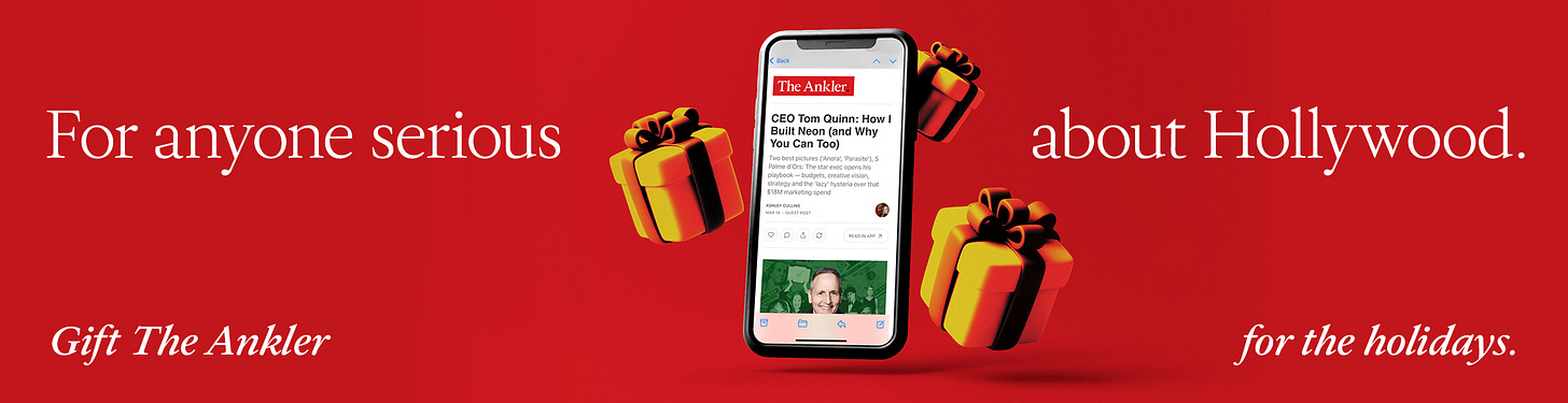 This newsletter is getting ready to head into semi-hibernation mode for the holidays; next Monday’s dispatch will be the last one until the New Year, though the Prestige Junkie podcast and Prestige Junkie After Party will both be going strong through the holidays, so stay subscribed to catch them all! Chris and I will also be hosting a special live mailbag episode this Friday, exclusively for Prestige Junkie After Party subscribers; send me your burning questions (katey@theankler.com) and join us then!