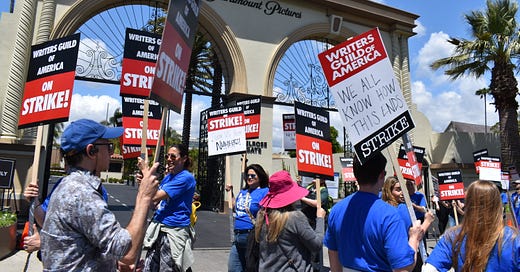 If you want to track how the scales are tipping, the only relevant barometer is the Pain-o-Meter — charting which side is feeling more of it at any moment. By that standard, Week 1 win goes to the writers. The linked arms with the other unions, scattered stories of IA and Teamsters members staying off sets and the announcements of shoots shutting down feels, from one perspective, like the early days of Covid — a couple shows here and there getting put on ice until the trickle became a flood and general shutdown.