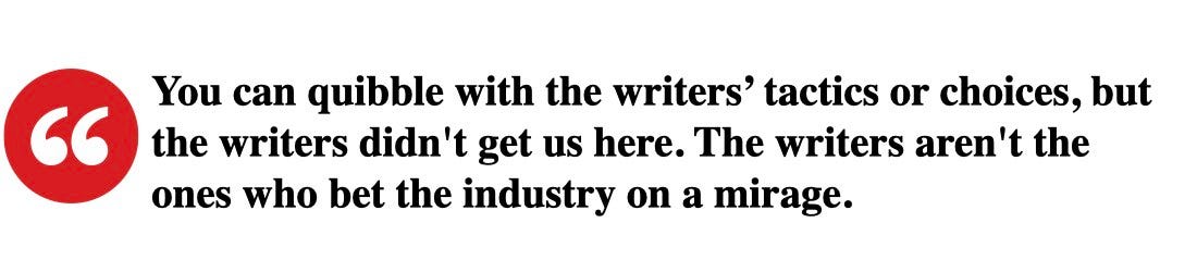 Whether it gets there or not, we'll see, but as far as it goes, along with the Paramount stock collapse, we can mark this week Writers: 1; Studios: 0.