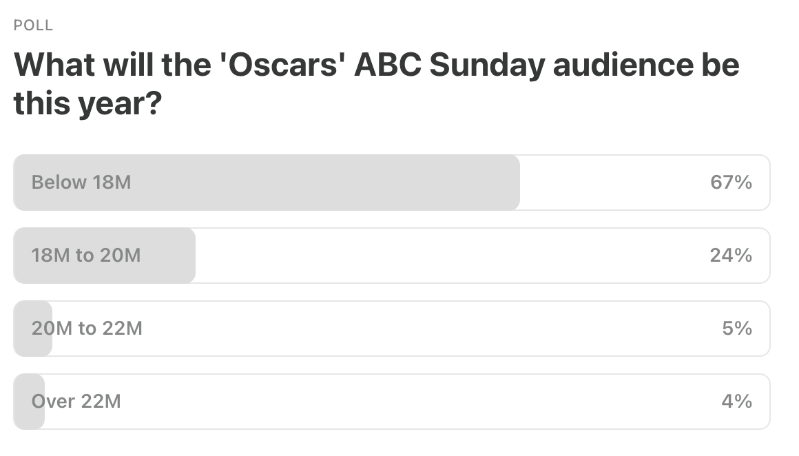 ALSO: The Oscars apparently got a large 1.6M bump from the kids streaming the show on HULU on phones and computers (or at least until it stopped streaming), boosting the entire total up to 19.7M, now a smidge above last year’s 19.5M.