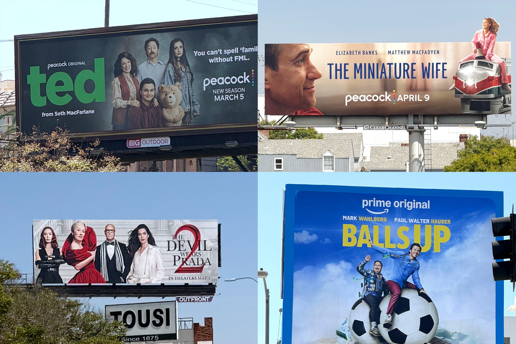 Here are a few L.A. billboards today by comparison — just within a couple of blocks of our Century City office.