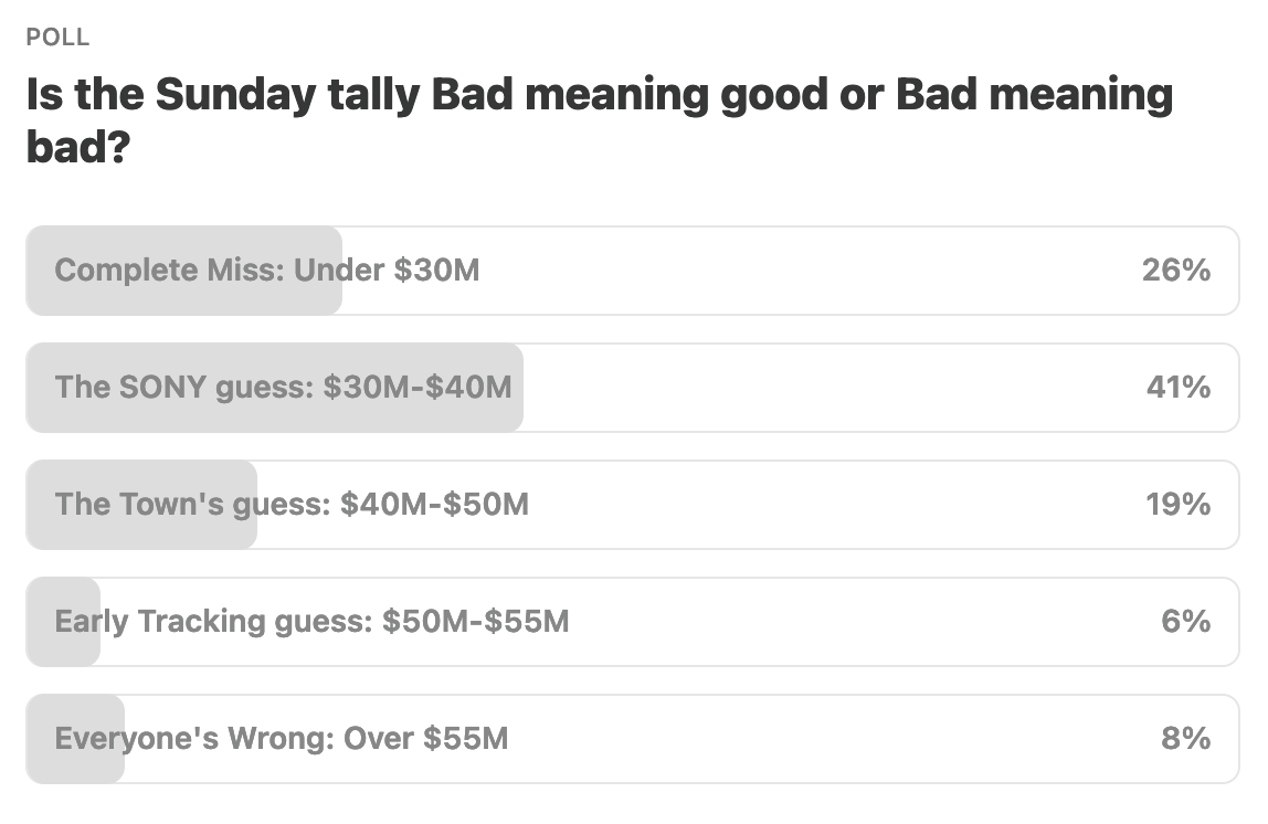 HOUSEKEEPING NOTE: My Box Office breakdown will come out early Monday morning instead of Sunday night this week.