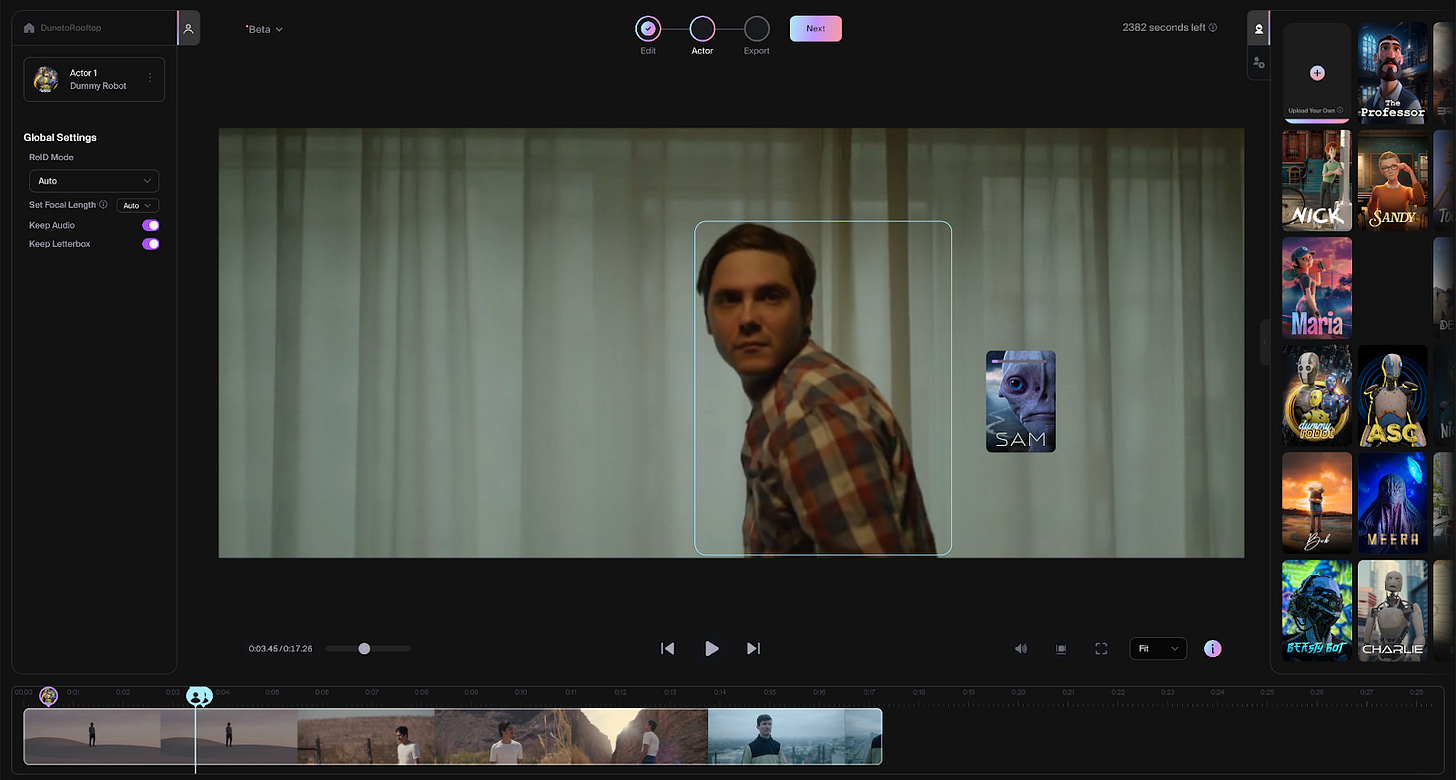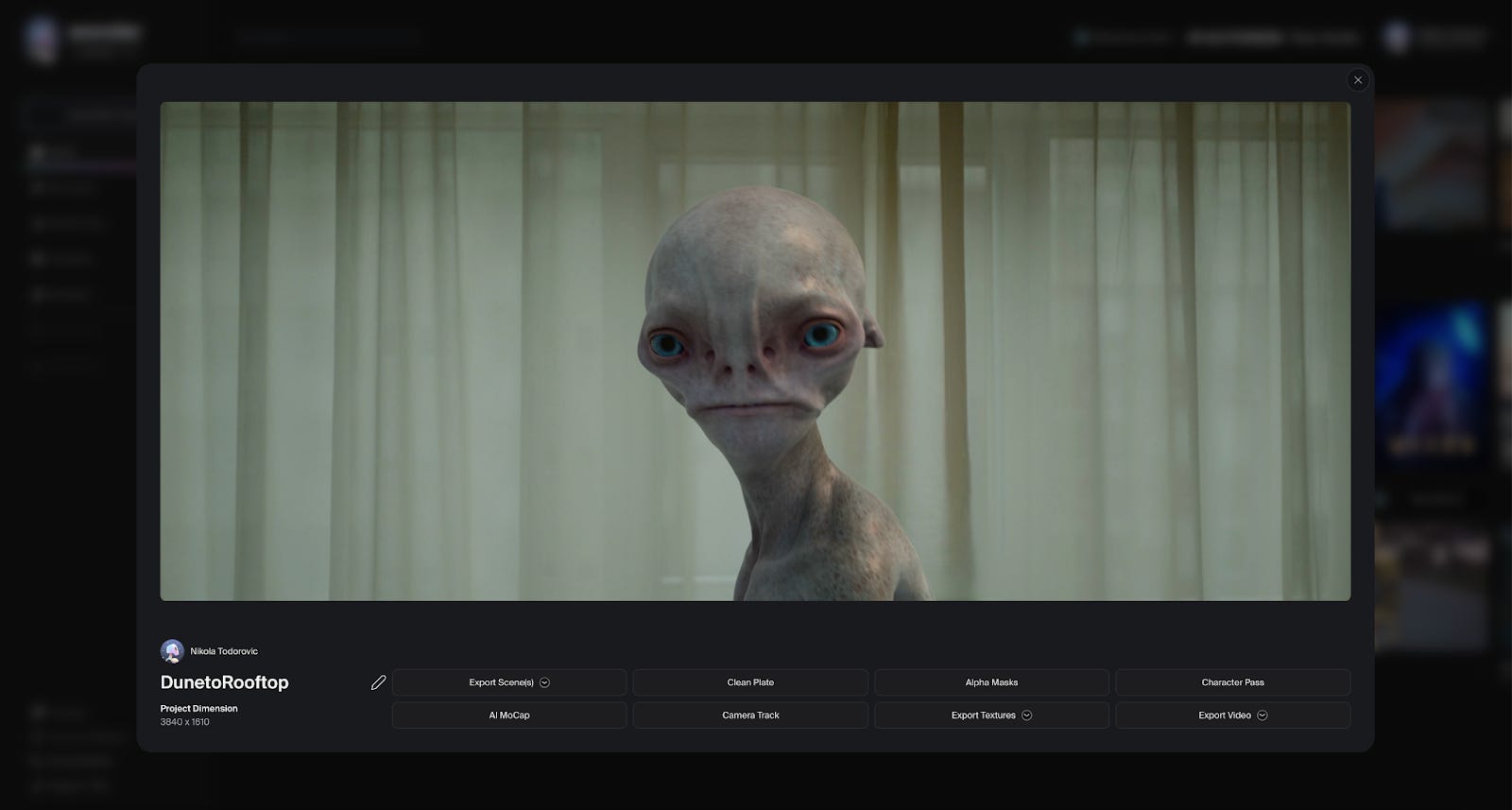 That vision led to Wonder Studio, an AI-powered platform officially launched in March 2023 to considerable buzz. Todorovic drew on his VFX background, and together with the team they hired, they developed tech that was mostly extensions of existing VFX workflows, putting a huge amount of data into “virtual cameras” so that it was easier to assimilate offline rendering with a live shot.