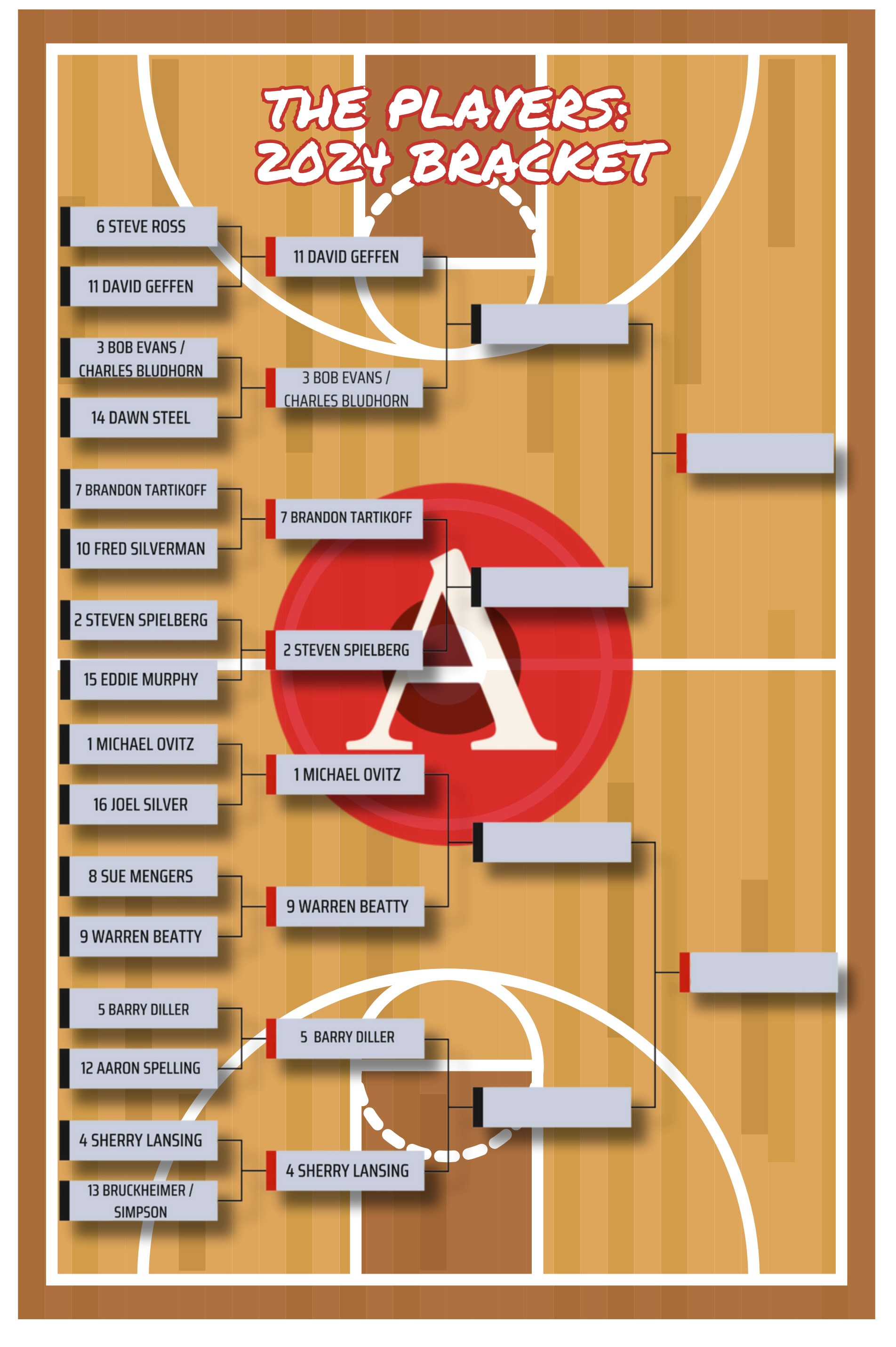 We had some nail-biters yesterday in our Easy Riders/Raging Bulls round, with Sherry Lansing eking out a win over Don Simpson and Jerry Bruckheimer (a lot of single-use black Levi 501s customers out there), and Sue Mengers and Warren Beatty ended in a tie! (We tossed a coin, and Beatty advances.) With the exception of another 6-11 upset with David Geffen besting Steve Ross, the results followed expectations, and set up some exciting round two matchups next week.