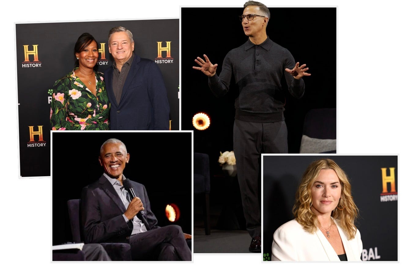 Janice was at the Academy Museum yesterday for History Talks, from A+E Networks’ History Channel. The brainchild of A+E Networks' chief Paul Buccieri (standing), the event featured President Barack Obama in conversation with Malcolm Gladwell, President George W. Bush and Laura Bush; Bryan Lourd; Kate Winslet; and Doris Kearns Goodwin in conversation with Kevin Costner (get the buddy comedy ready). Spotted in the orchestra seats: Bob Iger, Dana Walden, and Ted Sarandos and Nicole Avant.