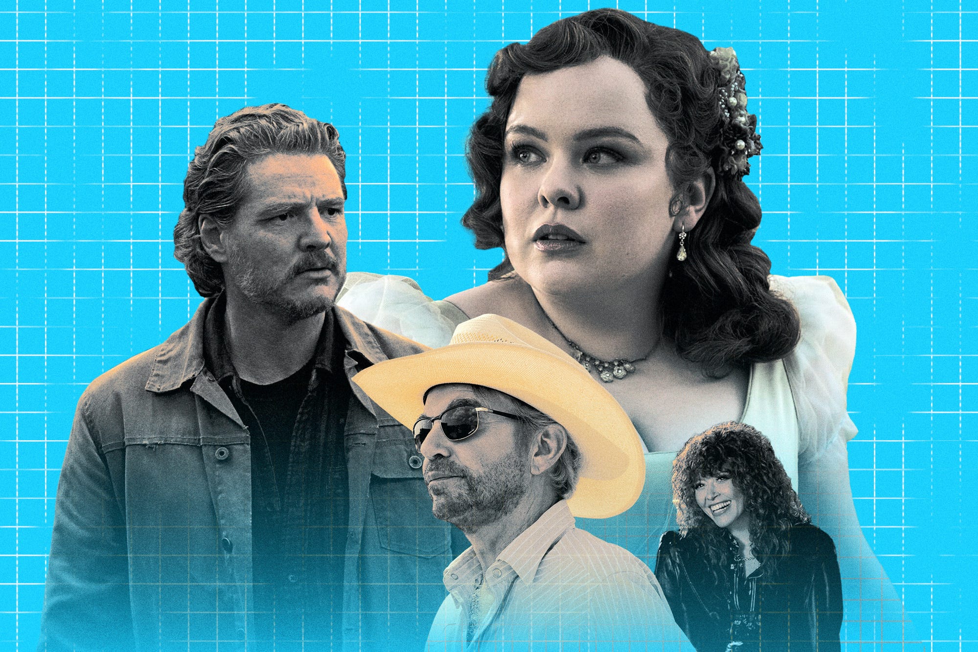 FRANCHISE PLAYERS Clockwise from left: Pedro Pascal, Nicola Coughlin, Natasha Lyonne and Billy Bob Thornton. (Photo illustration by The Ankler; The Last of Us: Liane Hentscher/HBO; Bridgerton: Liam Daniel/Netflix; Landman: Lauren "Lo" Smith/Paramount+; Poker Face: Sarah Shatz/Peacock)