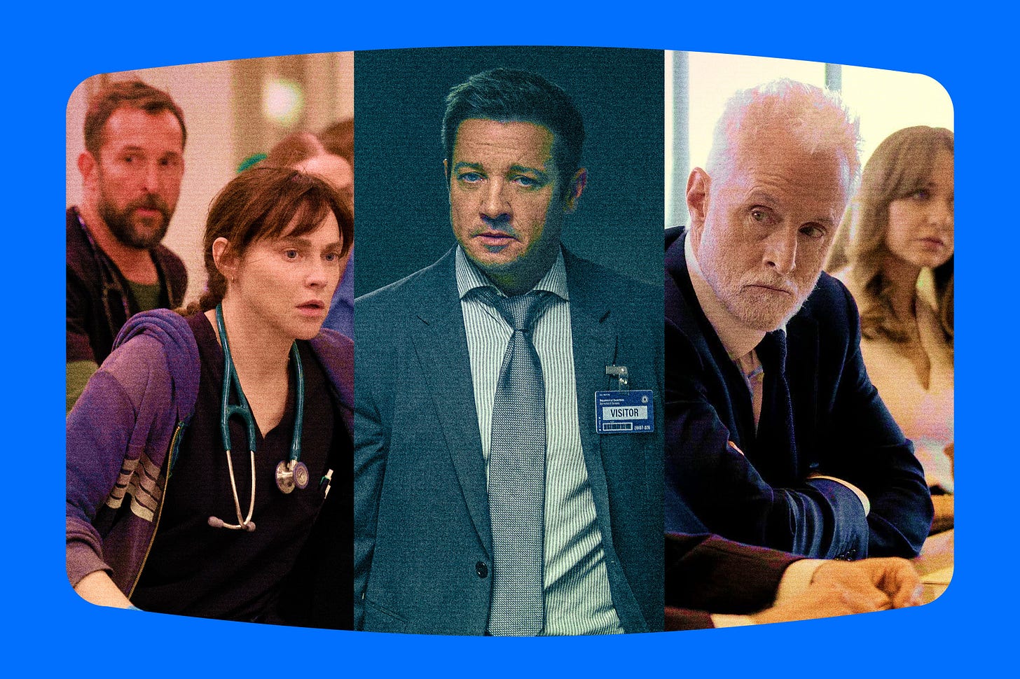 DRAMA From left: Tracking the shifts at, from left, The Pitt, Mayor of Kingstown and The Rainmaker. (The Ankler illustration; image credits below)