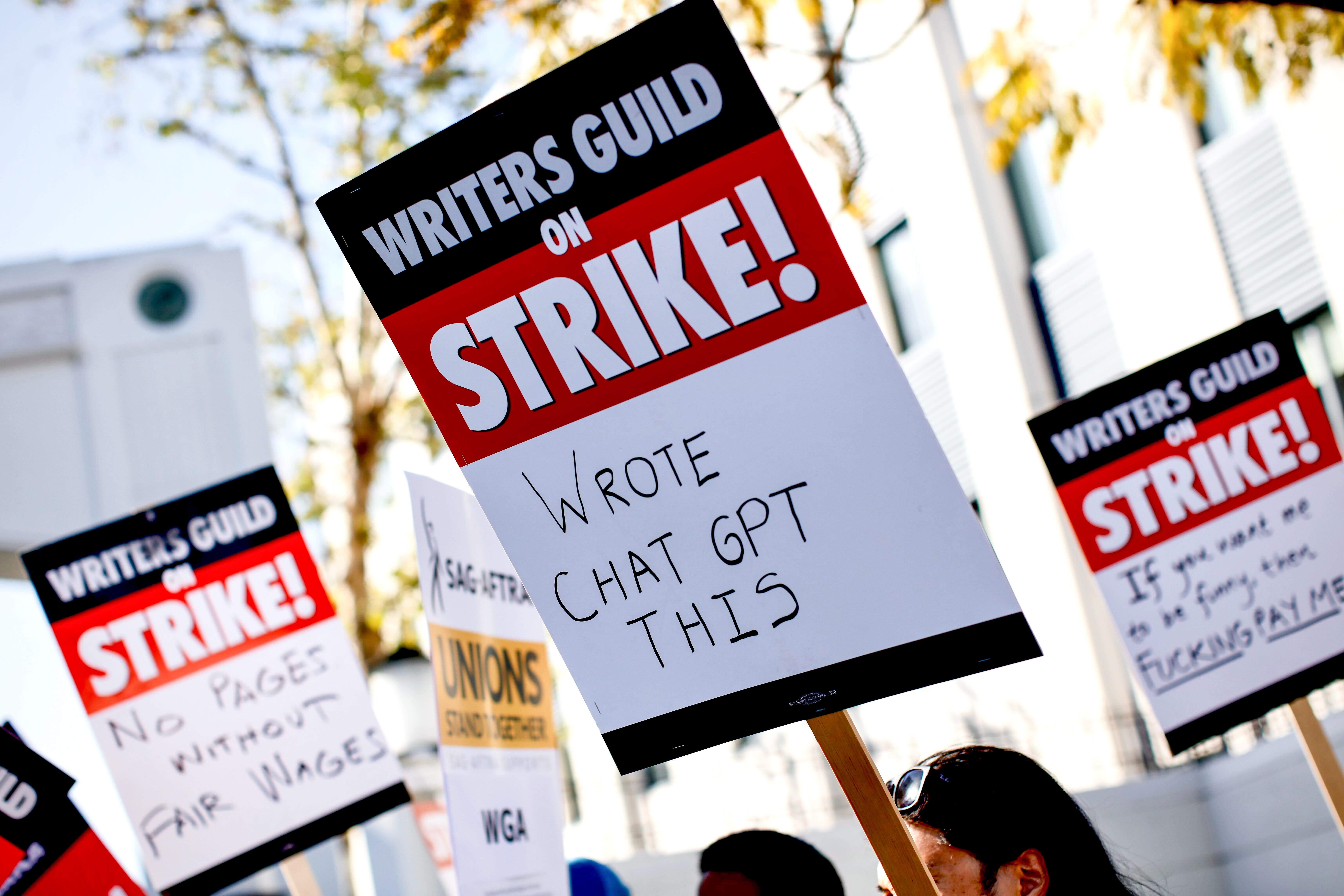 TECH ISSUE AI was a sticking point in the 2023 strike and is among the top concerns the WGA has identified for this year’s contract talks. (Jay L. Clendenin / Los Angeles Times via Getty Images)