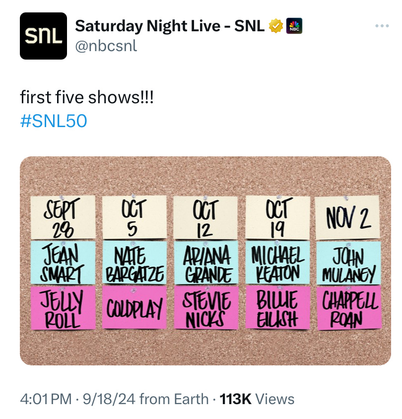 NOW: This, ladies & gentlemen, is how you book a show. So — who’s getting the post-election day slot? #PlaceYourBets