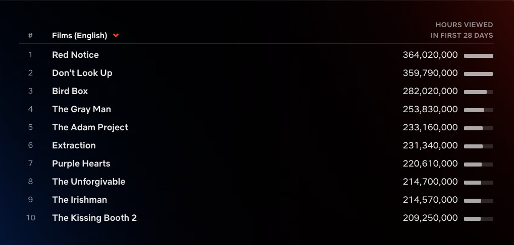 “The Gray Man” finishes up solidly at #4, although views wise (again assumes everyone finished both movies at the same rate etc etc):