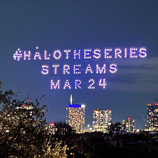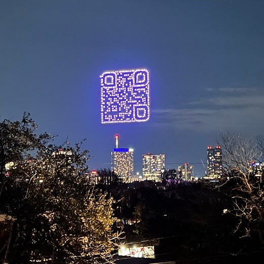 Where a combined Congrats 👏 and WTF 😵💫 goes out to the PARAMOUNT+ marketing department, who one-upped the crypto SUPERBOWL ad by creating a QR code in the sky over Austin using drones for SXSW (it linked to the “Halo” trailer - you can check out the new one here). Thanks for freaking us all out… in the good way?