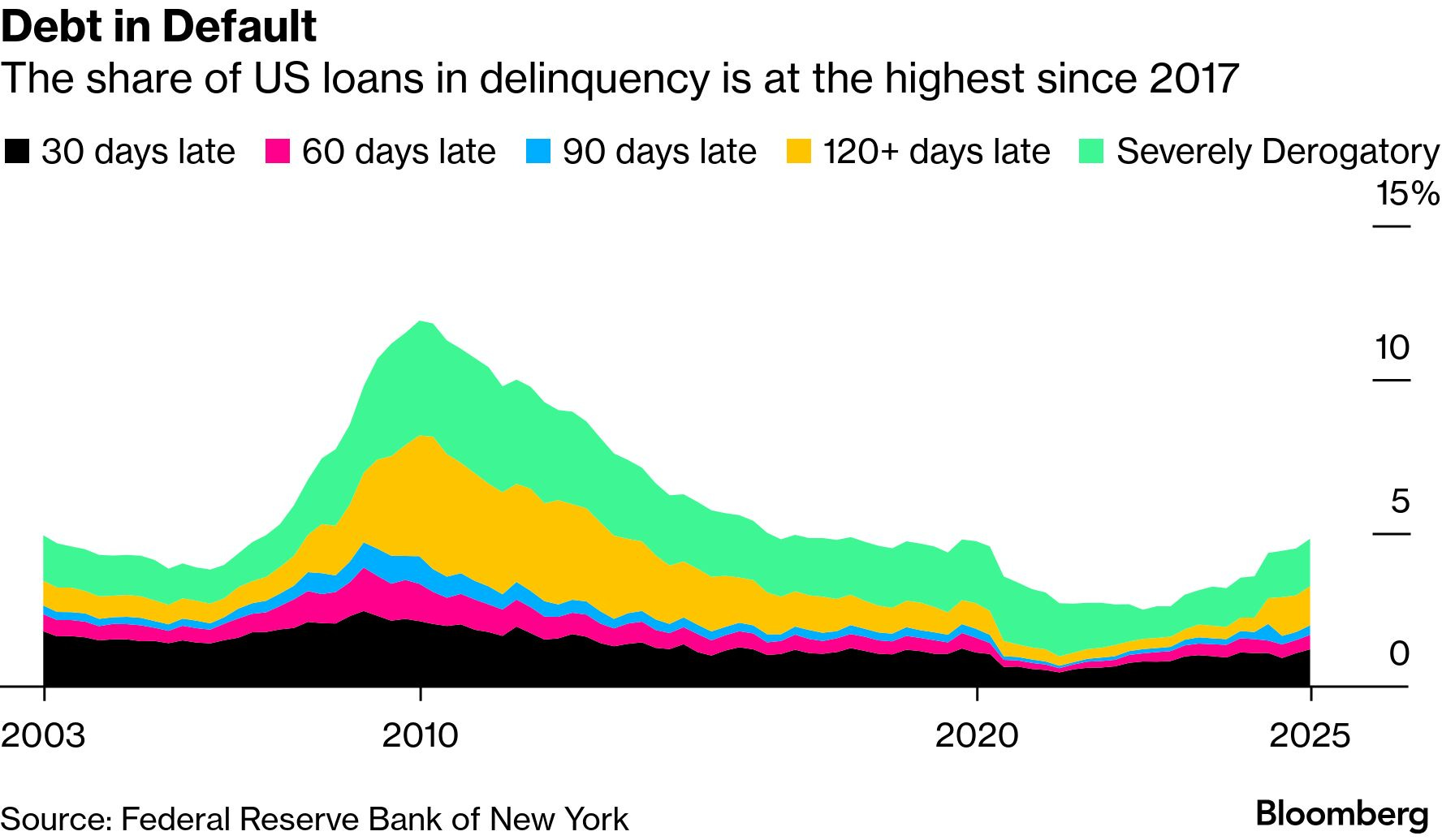 ALSO: Note the sizable increase in 120+ days late delinquencies (the yellow part) over the past year below.
