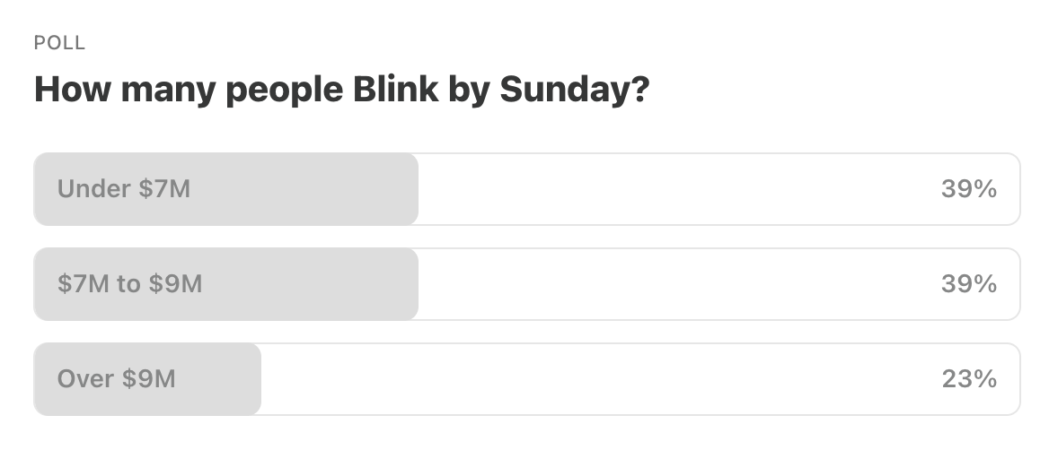 Mix of bears and bulls here at the end of summer for Blink Twice. Count me in with the 39%. Er, the second 39%.