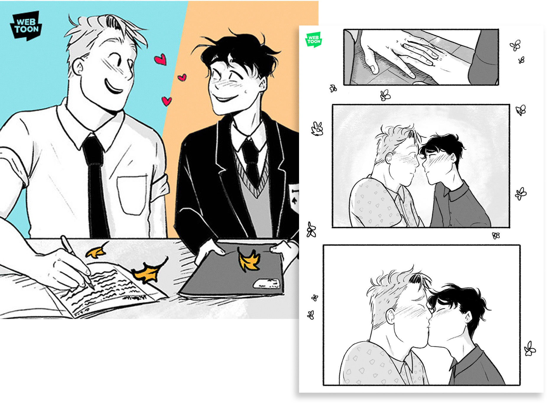 STORY STARTER Alice Oseman’s Heartstopper tells the story of two teenage boys who meet and fall in love at school. (Webtoon)