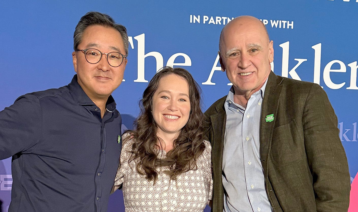 COMIC ENERGY Me with Webtoon’s David J. Lee, left, and David Madden. (The Ankler)