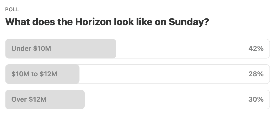 Lotta diverging thoughts this weekend . . . I’ll take $45M to $50M on Quiet Place, and count me in the heartland crew for Horizon at over $12M.