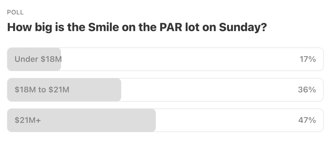 Lotta Smile bulls out there! Count me in with the $21M+ crowd.