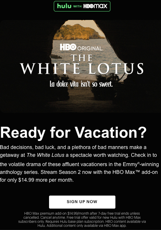 Where a thoughtful reader sent me this curious offer she got emailed from HULU this week, to get HBOMAX… via her HULU subscription, kind of like an AMAZON CHANNELS deal (to note: HBOMAX is still not back on that).