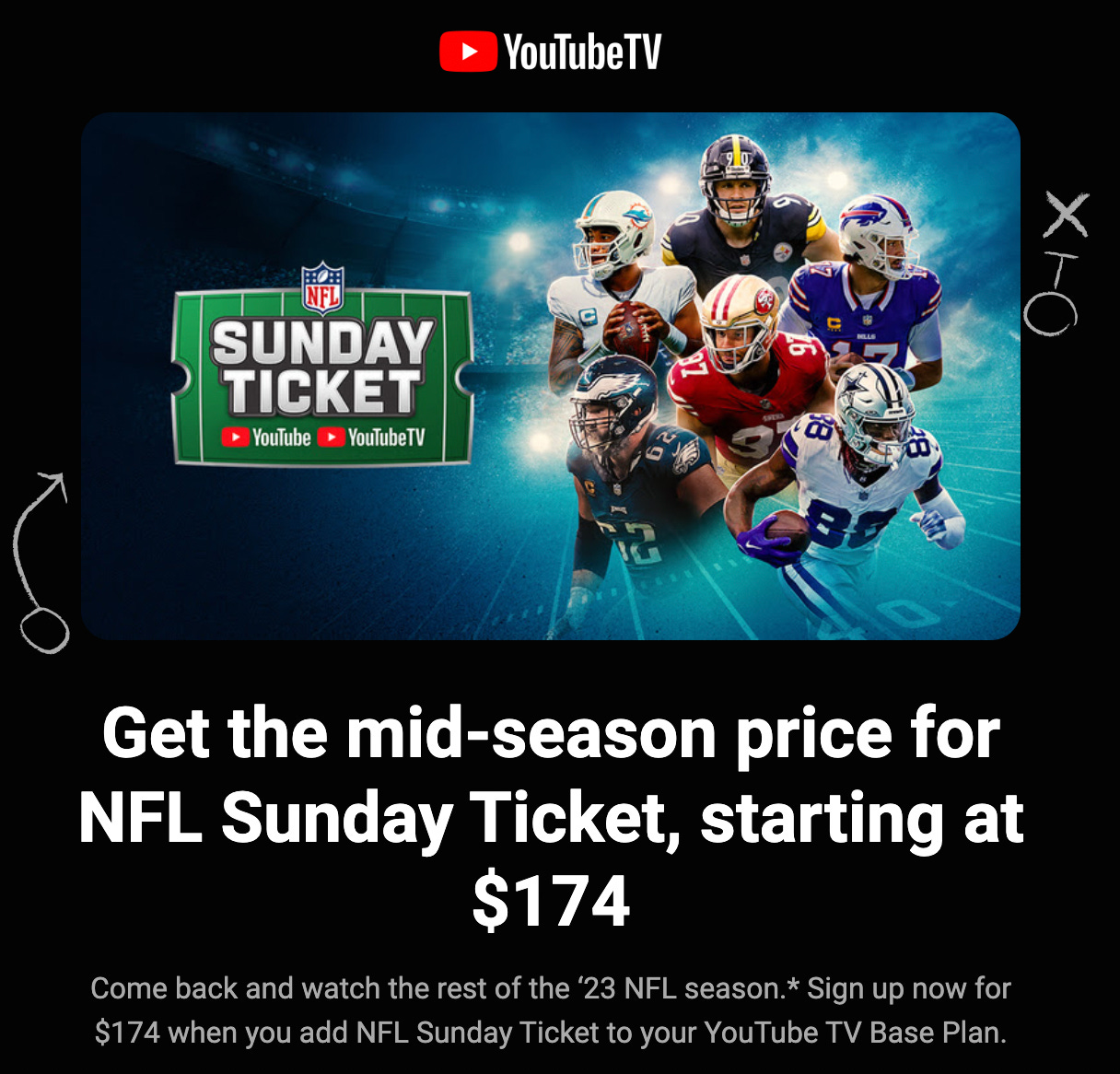 There’s still half an NFL season left, so GOOGLE is offering half-off Sunday Ticket in case your team is still good (surprised they’re sending this offer to the NYC market really).